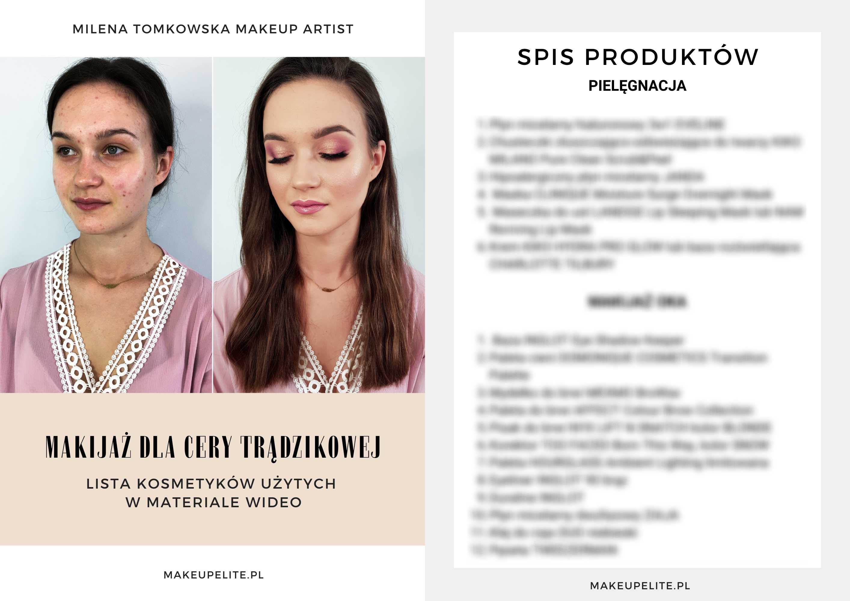 3. Spisy kosmetyków użytych podczas wykonania makijażu w danym kursie w formie PDF do pobrania – WARTOŚĆ 33 ZŁ.