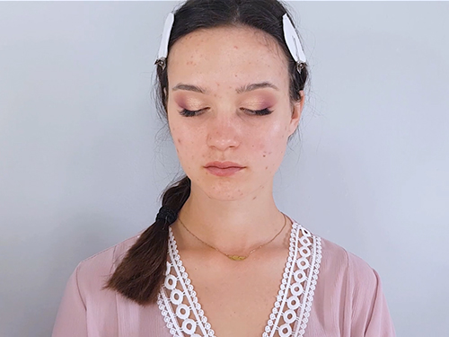 Pokażę Ci również, jak aplikować kamuflaże na niedoskonałości, tak aby uniknąć efektu „ciastka na twarzy”. Dzięki temu poprawisz estetykę pracy, która jest bardzo ważna w przypadku makijażu cery trądzikowej.