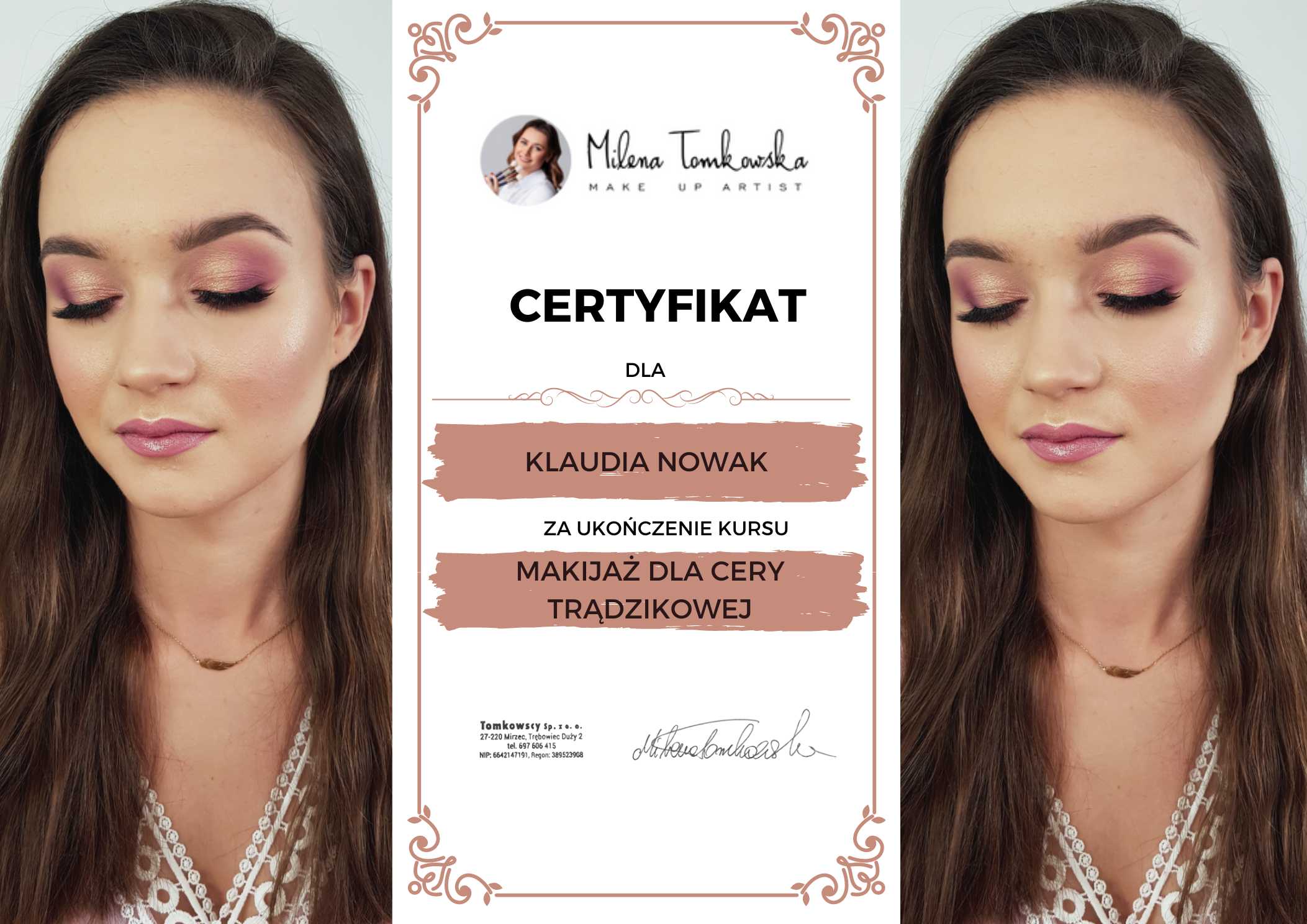 Jak myślisz, czy klienta wybierze makijażystkę, u której nie widać certyfikatów, czy taką gdzie na ścianie będą liczne certyfikaty? Certyfikat potwierdza Twoje umiejętności w oczach klienta. Szybciej przekonasz nowe osoby do skorzystania z usług, a aktualne klientki zobaczą, że się rozwijasz i warto do Ciebie wracać.