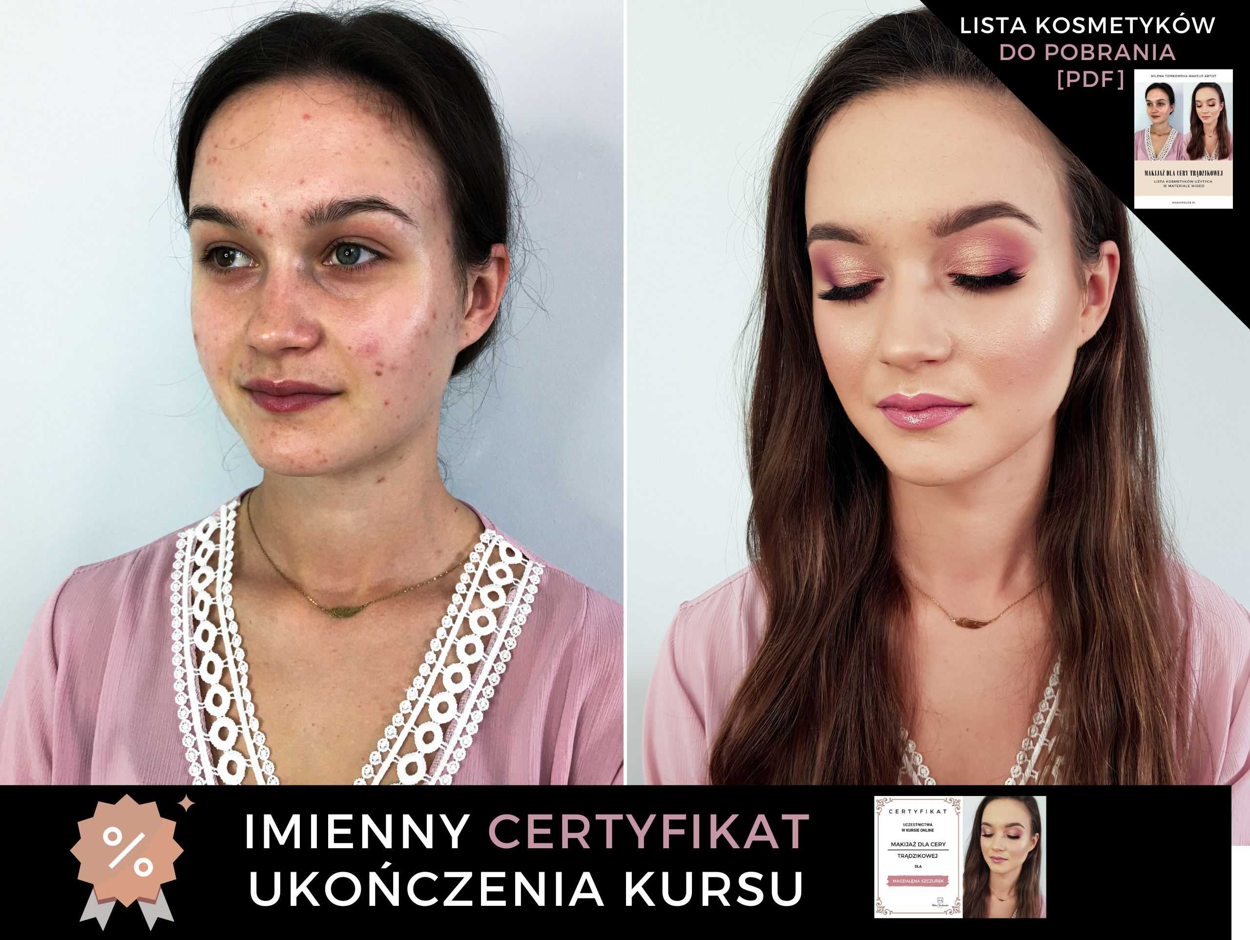 Nauczysz się wykonywać makijaż twarzy z niedoskonałościami, i już nigdy nie będziesz się stresować, gdy klientka będzie mieć problemy skórne. Poradzisz sobie w każdej sytuacji.