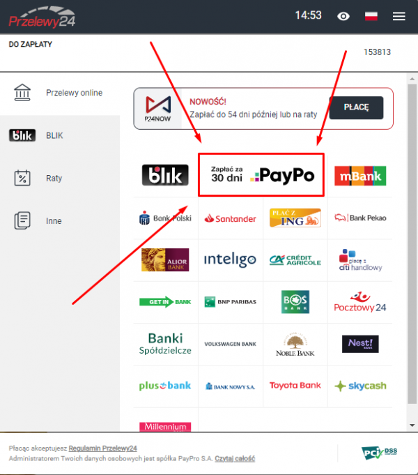 4. Możliwość skorzystania z odroczonych płatności PayPo – Przelewy24 (RATY)
