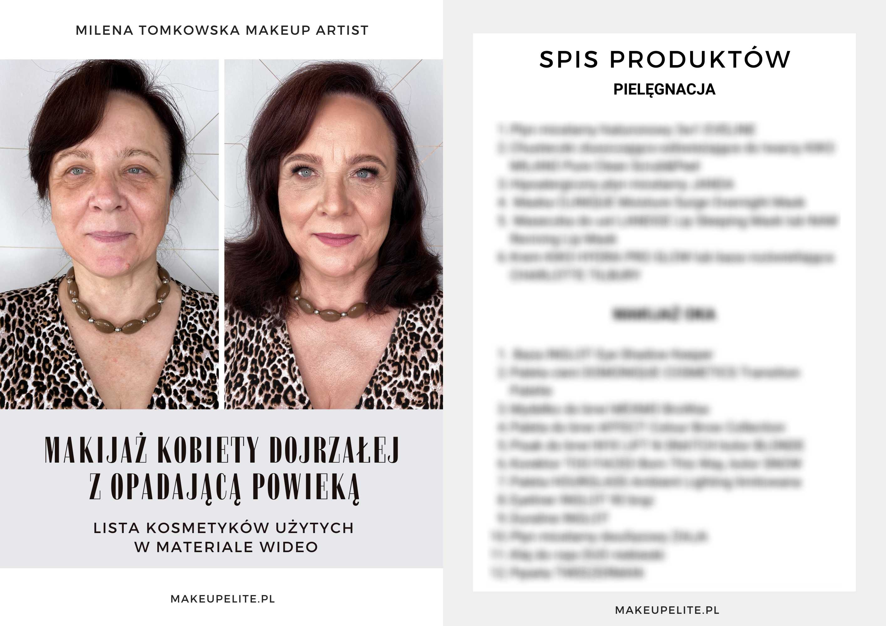 7. Dwie checklisty wykonywania krok po korku makijażu kobiety dojrzałej z opadającą powieką – wartość 5 PLNn