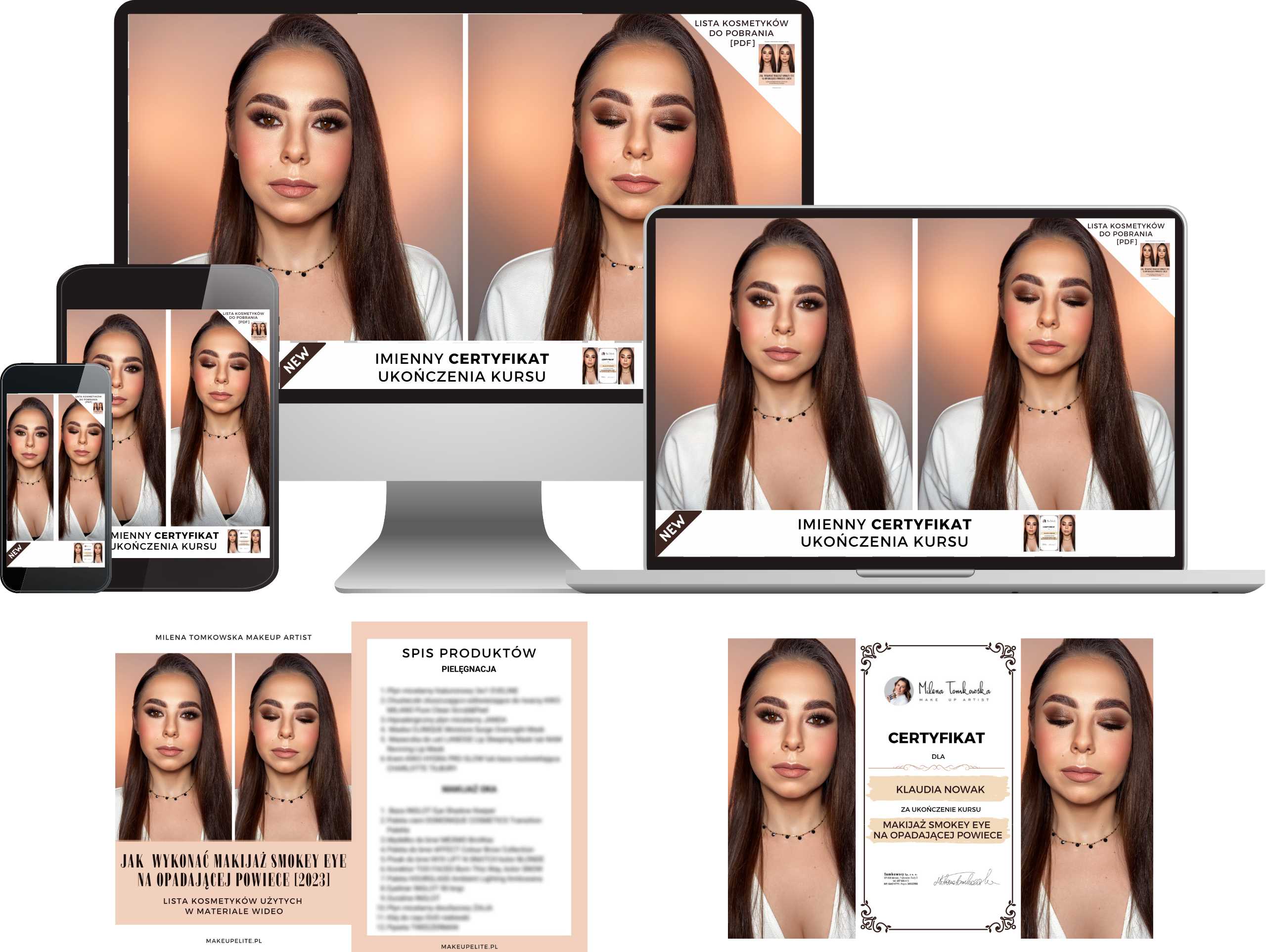 3. Spisy kosmetyków użytych podczas wykonania makijażu w danym kursie w formie PDF do pobrania