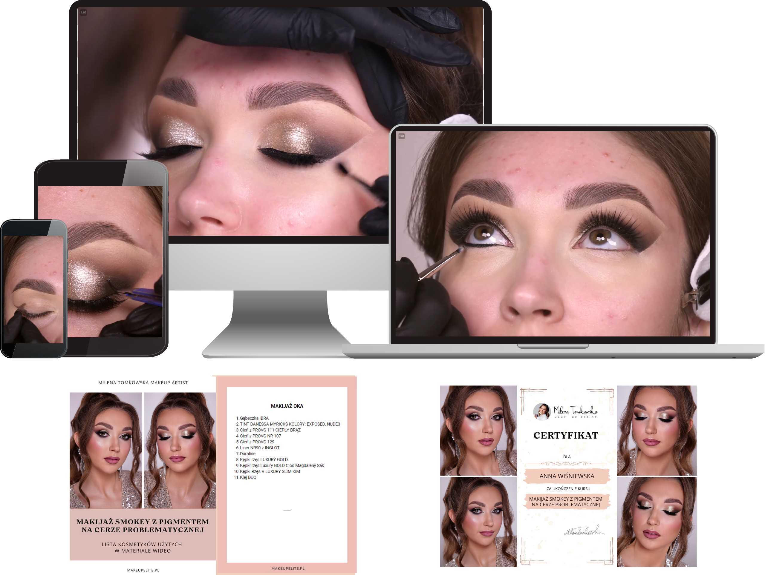 3. Spisy kosmetyków użytych podczas wykonania makijażu w danym kursie w formie PDF do pobrania