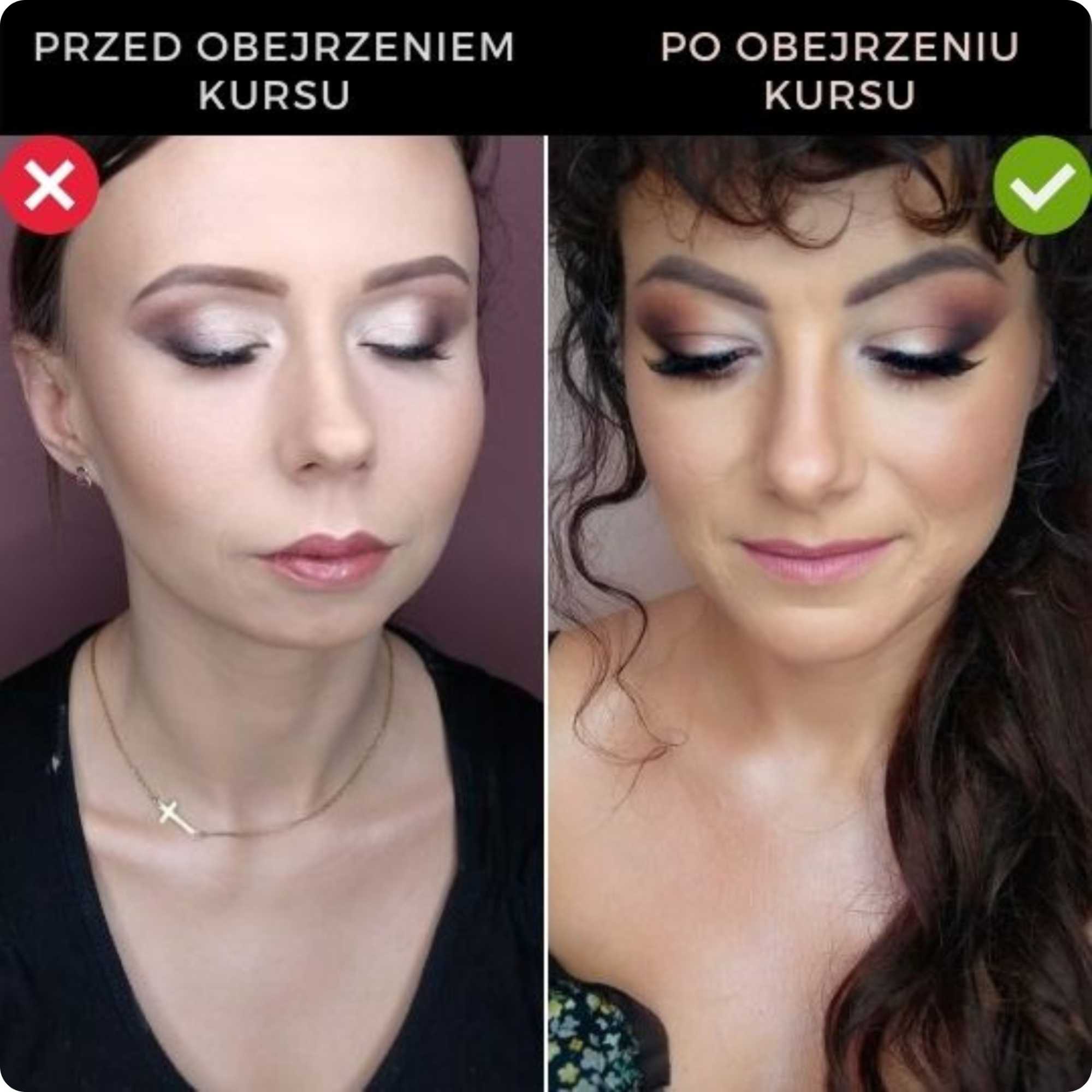 Uzyskasz efekty już po obejrzeniu materiału wideo. To, co widzisz poniżej to różnica w umiejętnościach przed obejrzeniem jednego z kursów i po obejrzeniu. Wystarczy skopiować i odtworzyć moją technikę, aby wskoczyć z makijażami na zupełnie inny poziom.