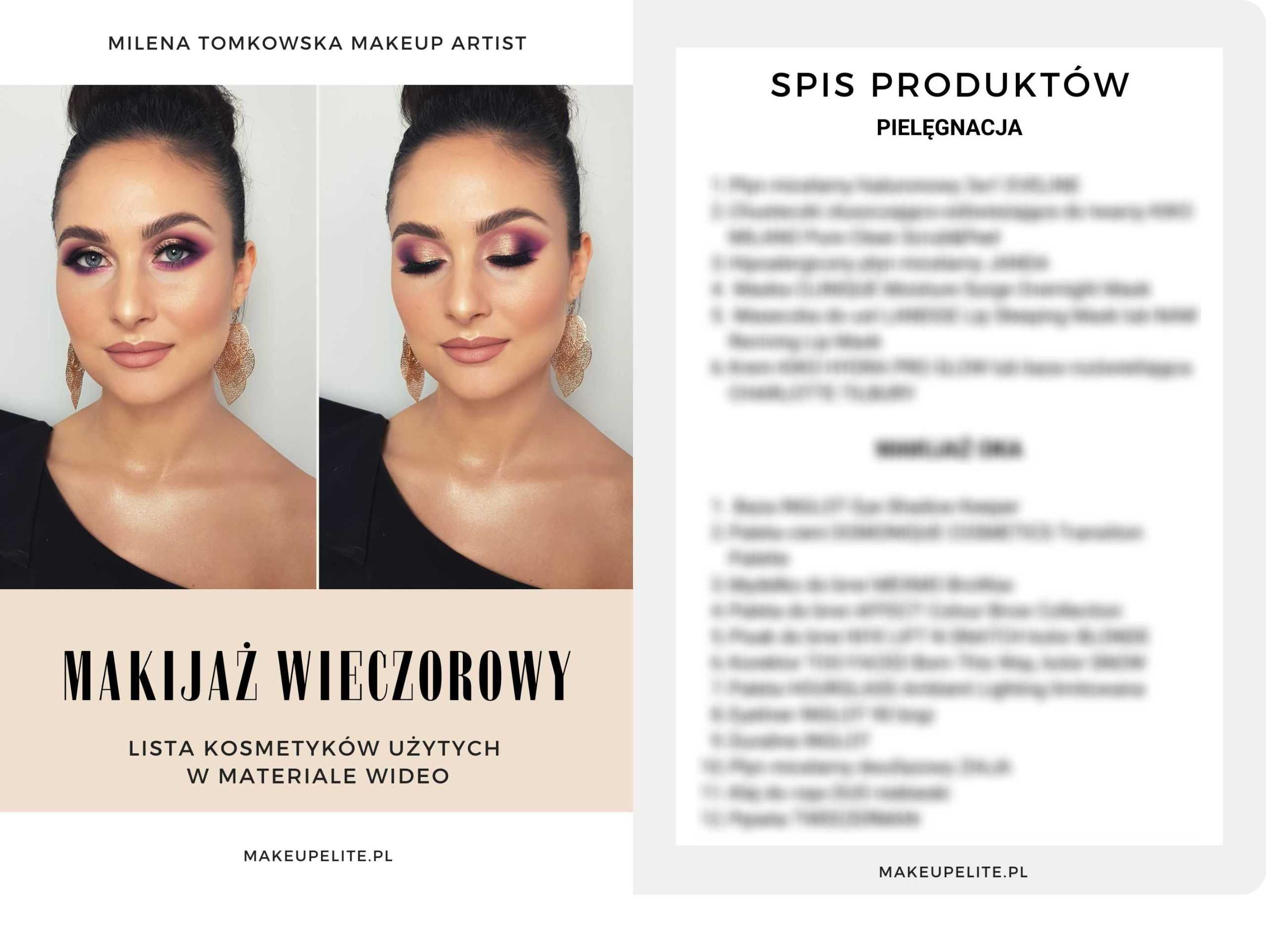 3. Spisy kosmetyków użytych podczas wykonania makijażu w danym kursie w formie PDF do pobrania – WARTOŚĆ 31 ZŁ.